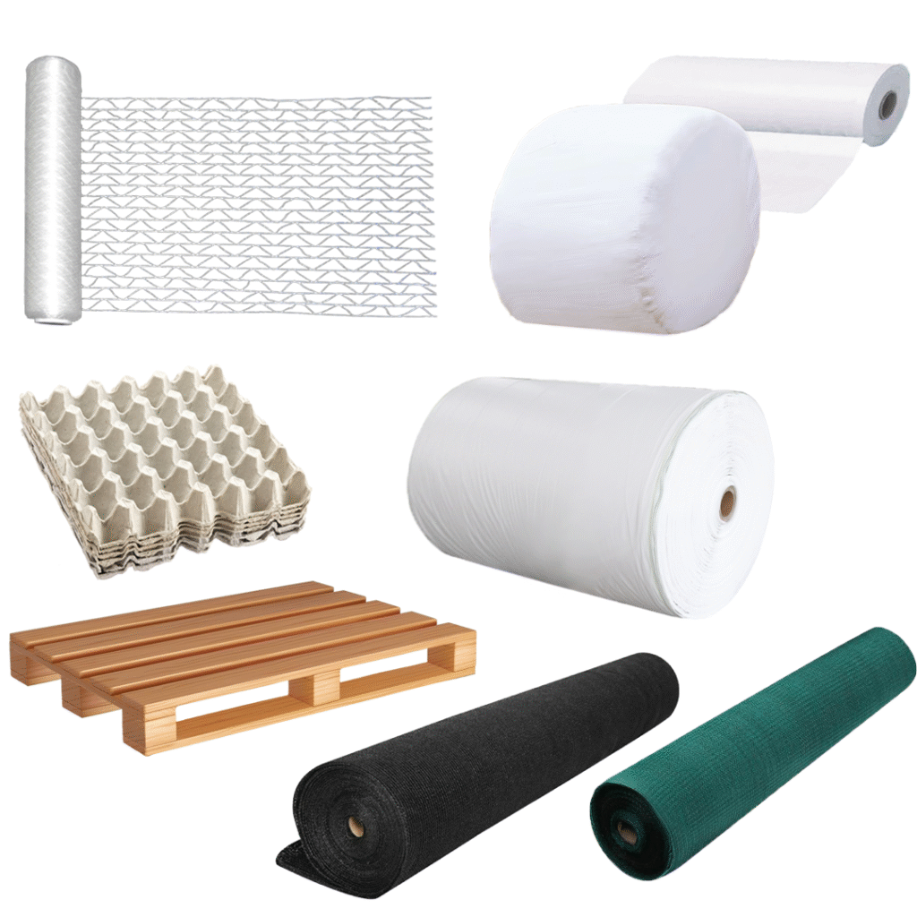 - Pallet Netting – Breathable netting for securing fresh produce.