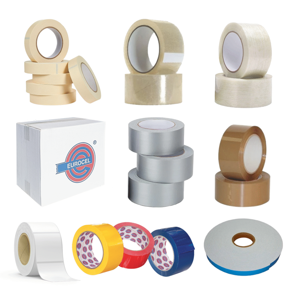 - Filament Tape – Reinforced tape for heavy box sealing.
